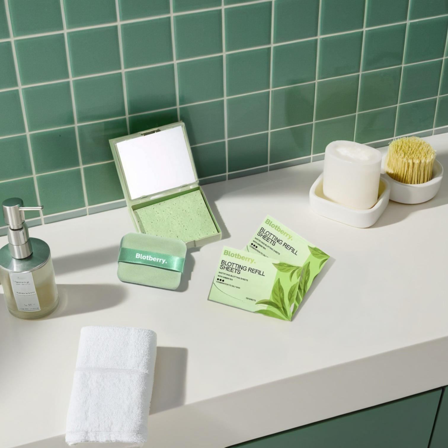 No powders, no toxins — just skincare that cares. Green tea soothes skin & helps fight breakouts. Switching sheets between zones gives extra hygiene. It's the cleanest way to blot, ever!